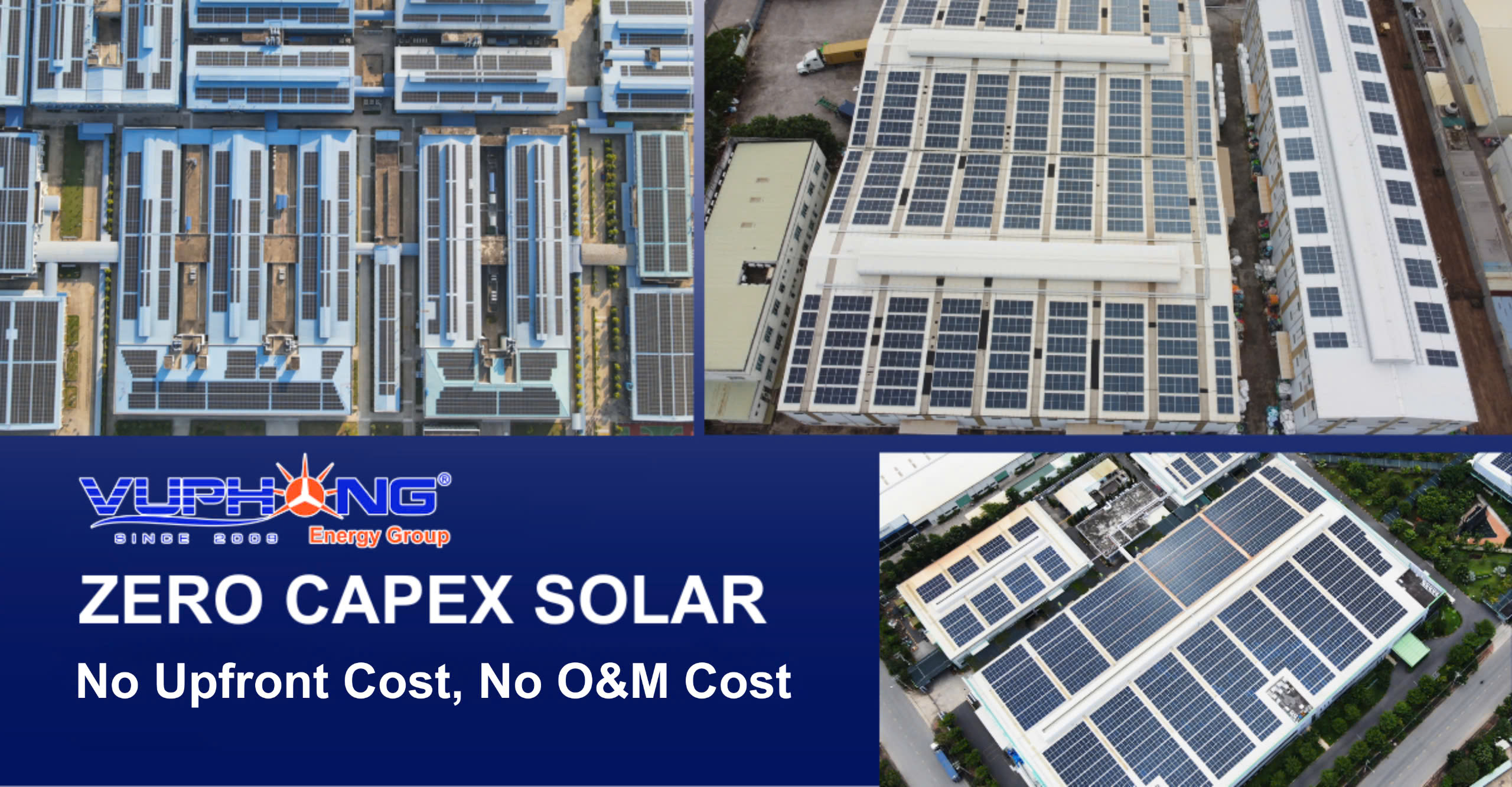 Để vượt qua rào cản tài chính này, Vu Phong Energy Group cung cấp mô hình Zero Capex Solar. Cách tiếp cận sáng tạo này loại bỏ chi phí đầu tư ban đầu, giảm thiểu chi phí vận hành và đảm bảo lắp đặt chất lượng cao cùng với hỗ trợ liên tục. Điều này cho phép doanh nghiệp dễ dàng tiếp cận năng lượng mặt trời, đáp ứng các yêu cầu chuyển đổi xanh và tập trung vào tăng trưởng kinh doanh cốt lõi—một giải pháp mạnh mẽ khi xem xét Năng lượng mặt trời áp mái tại Việt Nam.