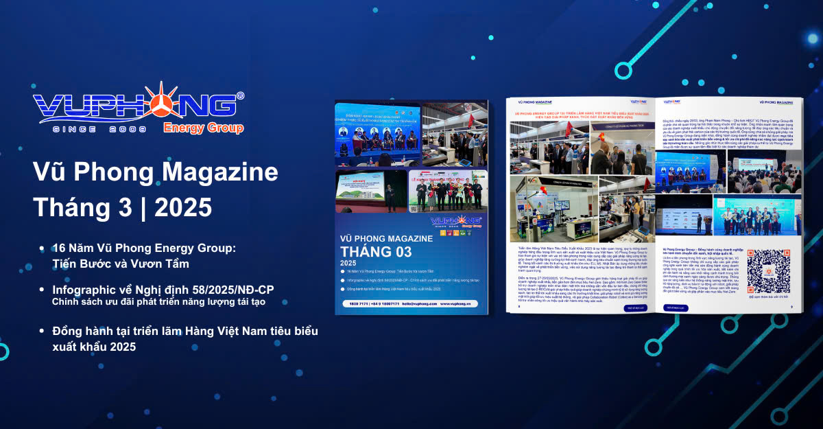 Năng lượng tái tạo đang ngày càng khẳng định vai trò quan trọng trong bối cảnh biến đổi khí hậu toàn cầu. Tháng 3/2025, Vũ Phong Energy Group đánh dấu cột mốc 16 năm hình thành và phát triển, khẳng định vị thế tiên phong trong ngành, đặc biệt là với những giải pháp đột phá tại Triển lãm Hàng Việt Nam Xuất Khẩu. Chúng tôi cam kết đồng hành cùng doanh nghiệp trong chuyển đổi xanh, hướng tới phát triển bền vững, bảo vệ môi trường và giảm thiểu lượng khí thải. Khám phá những thông tin giá trị và giải pháp hiệu quả trong Vũ Phong Magazine Tháng 03/2025, mở ra những cơ hội hợp tác và cùng nhau kiến tạo tương lai tươi sáng trong khu vực châu Á – Thái Bình Dương. Năng lượng tái tạo